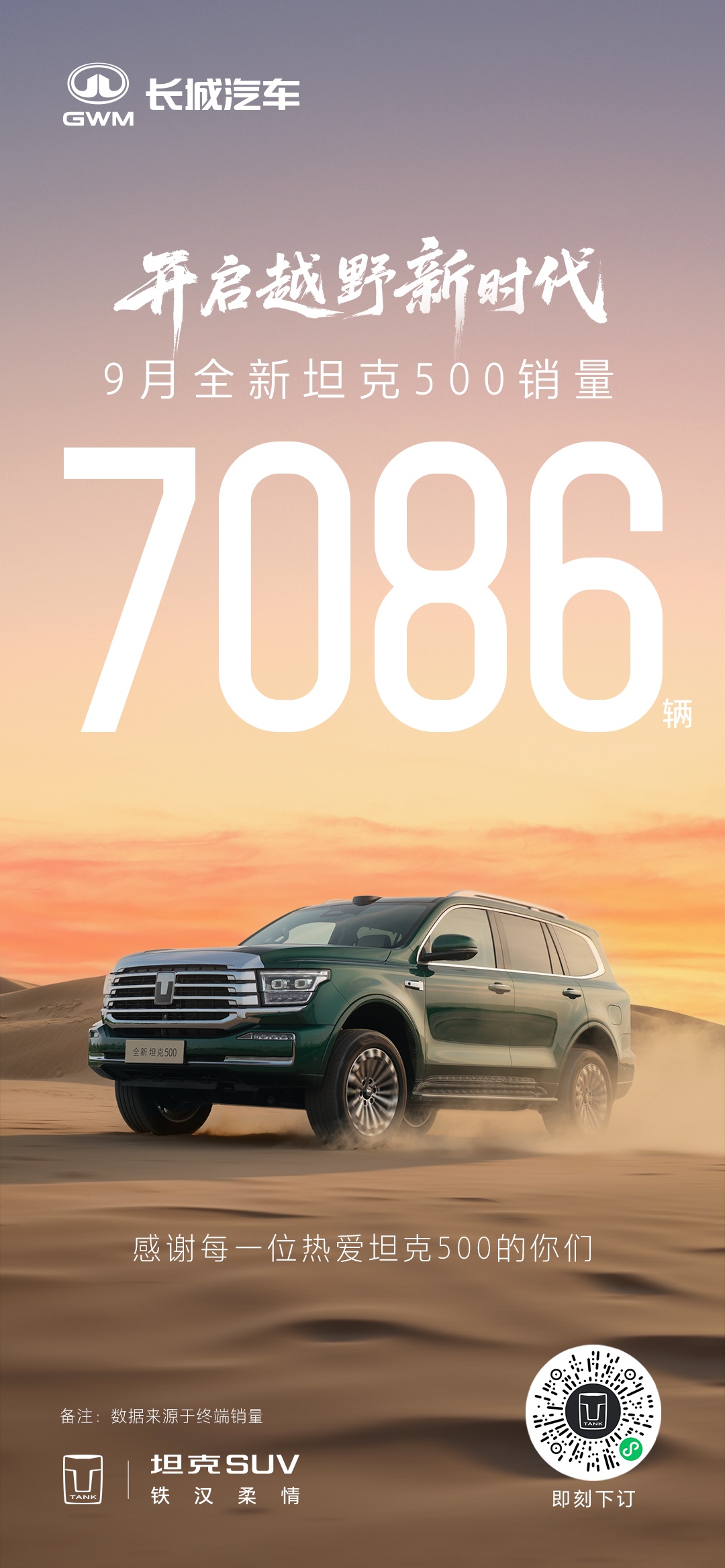 单月销量7086辆,全新坦克500重塑豪华越野格局